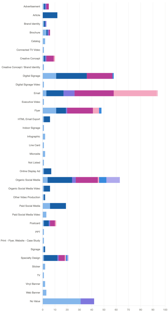 Average Annual Deliverables by Type Stats Each color represents collateral deliverables for one of eight distinct business sectors. Related