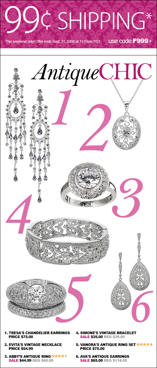 Email Subject Line: Antique Chic + 99 Cent Shipping
